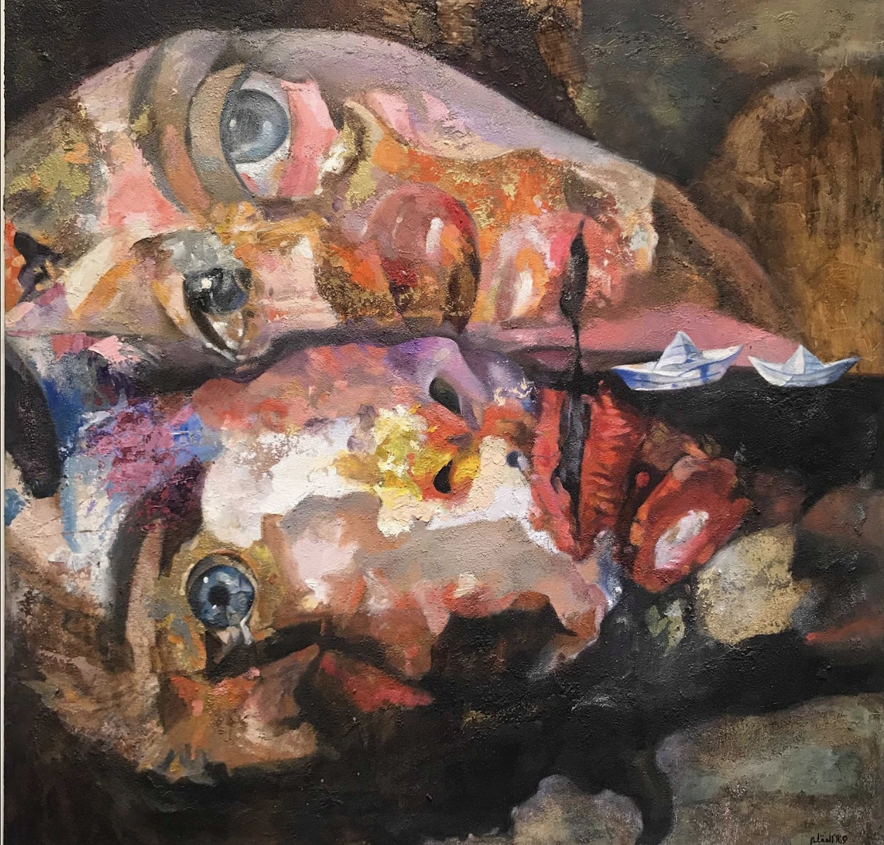 Hanaa Khaled is a Syrian visual artist and graphic designer, born in Damascus in 1990. A graduate of the Faculty of Fine Arts in Damascus, she specialized in Visual Communications in 2012. Hanaa’s work moves between the figurative and the abstract, exploring themes of identity, womanhood, and emotional memory. Alongside her design career, she has participated in numerous workshops and group exhibitions across Syria and internationally. Her art is both personal and resonant, blending cultural reflection with a distinct visual language.