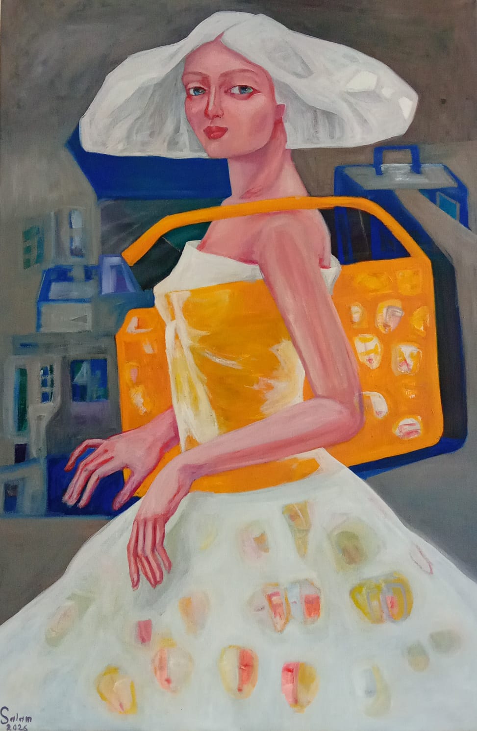 Salam Ahmad, trained in Fine Arts in Syria, works through painting as an intimate, emotional language. Her compositions emerge from quiet inner spaces, where feelings take form before they are spoken. The body dissolves into sensation, and color, especially grey, becomes a field of reflection, suspended between presence and absence, fullness and emptiness.