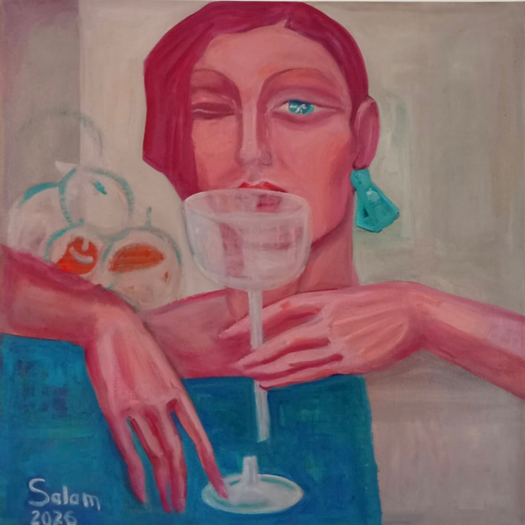 Salam Ahmad, trained in Fine Arts in Syria, works through painting as an intimate, emotional language. Her compositions emerge from quiet inner spaces, where feelings take form before they are spoken. The body dissolves into sensation, and color, especially grey, becomes a field of reflection, suspended between presence and absence, fullness and emptiness.