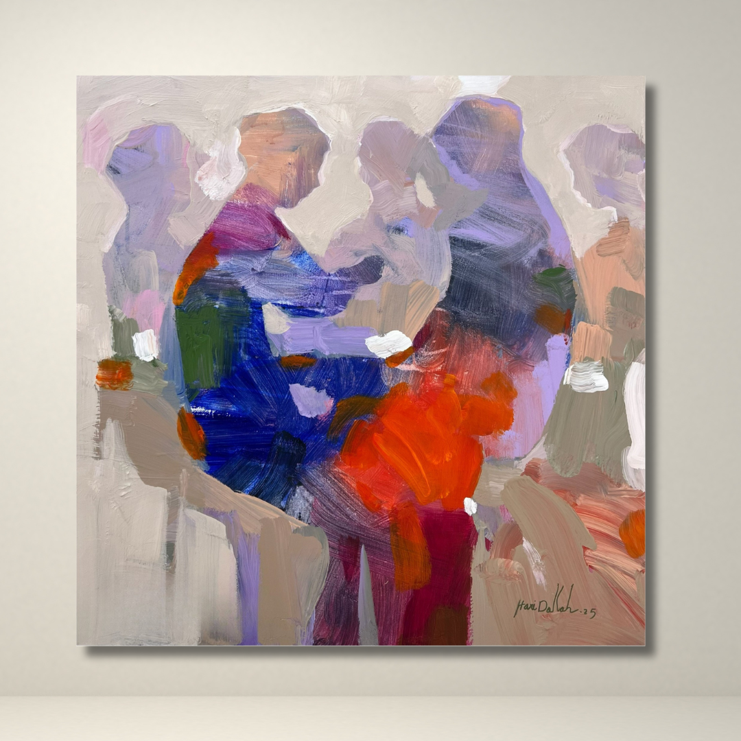 Hani’s abstract-figurative expression captures closeness through gesture rather than detail, letting emotion shape the form.