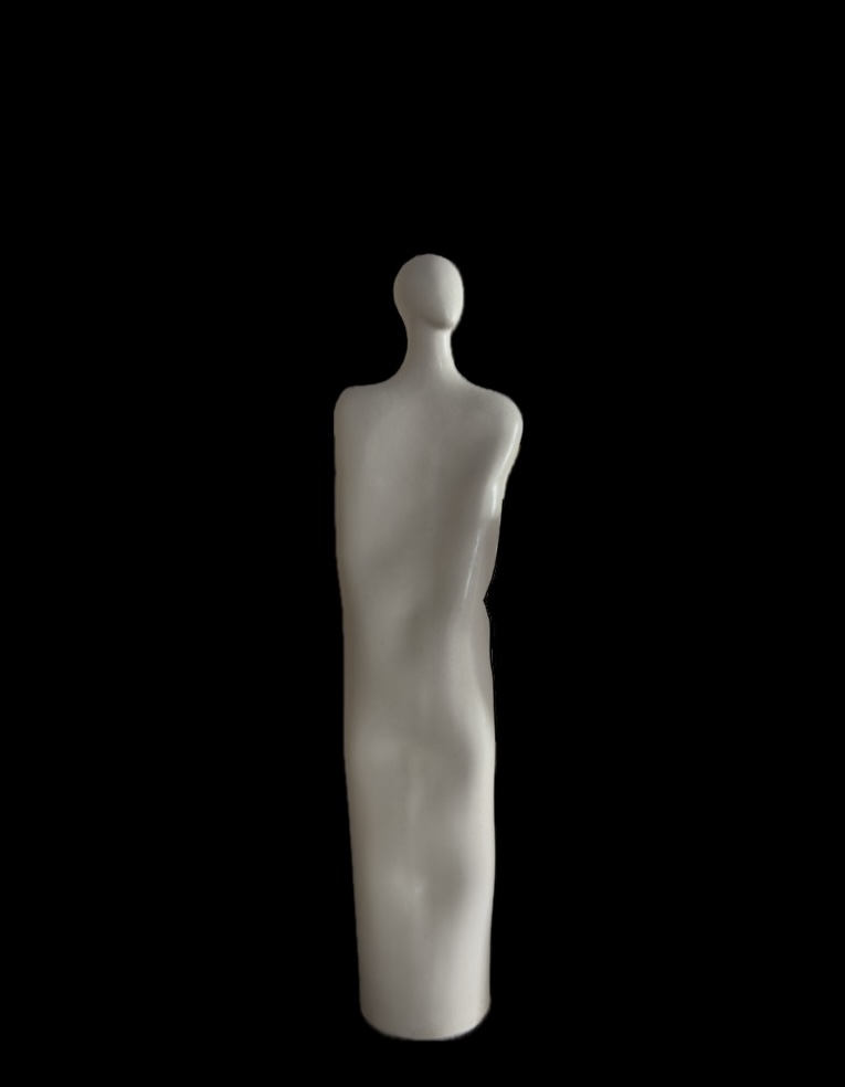 A slender figure emerges, faceless yet full of presence, still and silent, yet alive with unseen questions. Its softened lines and elongated form embody the essence of a soul reaching beyond the tangible. Hand-sculpted ceramic, Through the Curious Souls series, Madar Al Suwedi explores the inner landscapes of being — the longing, the search, the quiet curiosity that connects us all beyond identity. Each figure becomes a vessel for reflection, both intimate and universal. To acquire a piece from Curious Souls is to welcome more than sculpture into your space — it is to host a presence that listens, questions, and lingers like poetry in silence. Each soul is one-of-a-kind, a rare creation that transforms solitude into elegance.