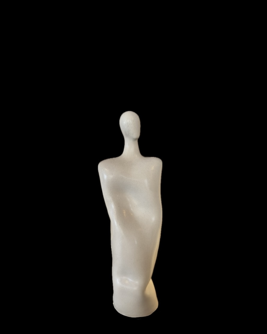 A slender figure emerges, faceless yet full of presence, still and silent, yet alive with unseen questions. Its softened lines and elongated form embody the essence of a soul reaching beyond the tangible. Hand-sculpted ceramic, Through the Curious Souls series, Madar Al Suwedi explores the inner landscapes of being — the longing, the search, the quiet curiosity that connects us all beyond identity. Each figure becomes a vessel for reflection, both intimate and universal. To acquire a piece from Curious Souls is to welcome more than sculpture into your space — it is to host a presence that listens, questions, and lingers like poetry in silence. Each soul is one-of-a-kind, a rare creation that transforms solitude into elegance.