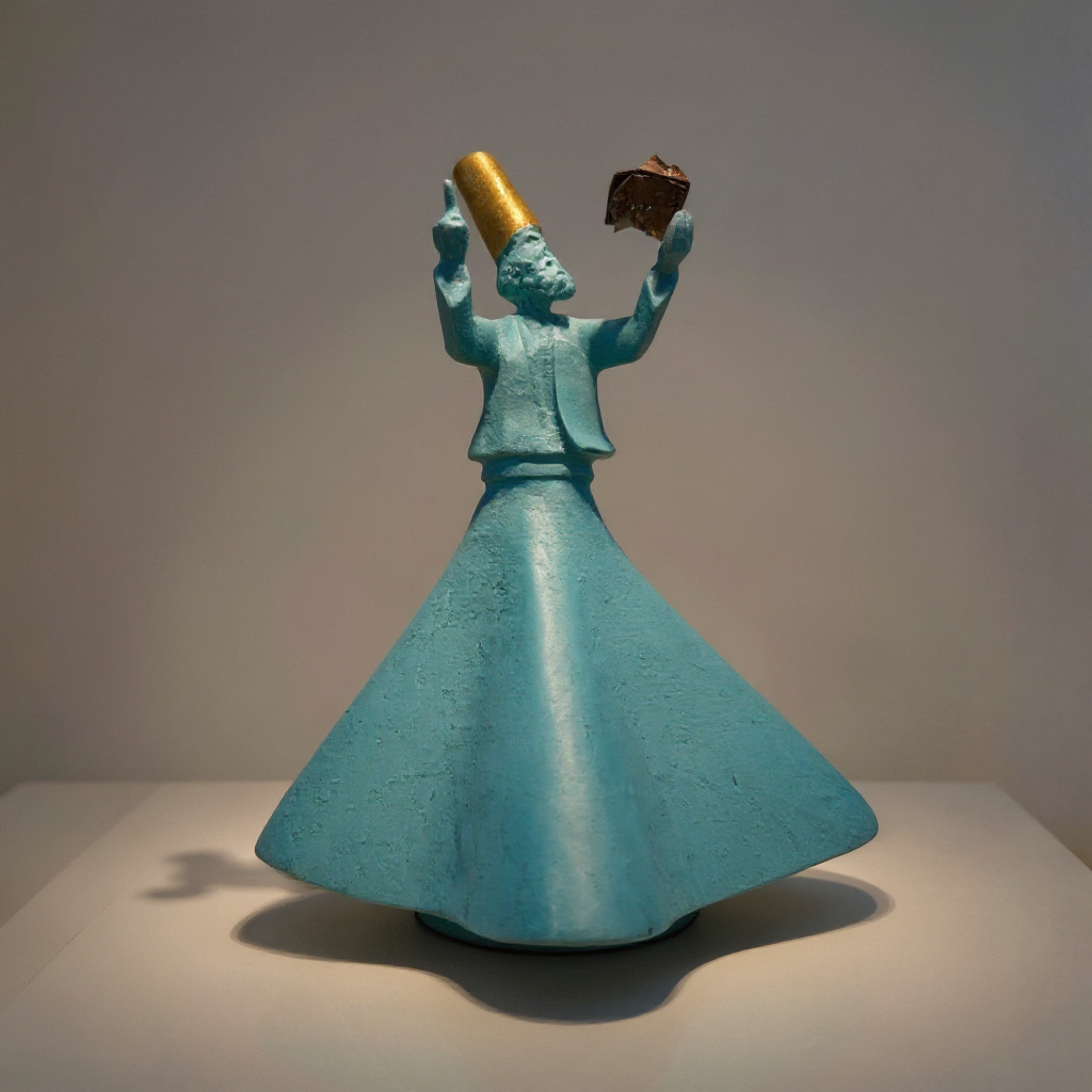 The dervish lifts his scroll toward the sky as he turns, not merely reciting what is written, but becoming what he has read. Every journey, every encounter, every culture he has moved through is folded into his robe, spinning outward as wisdom offered freely to the world.