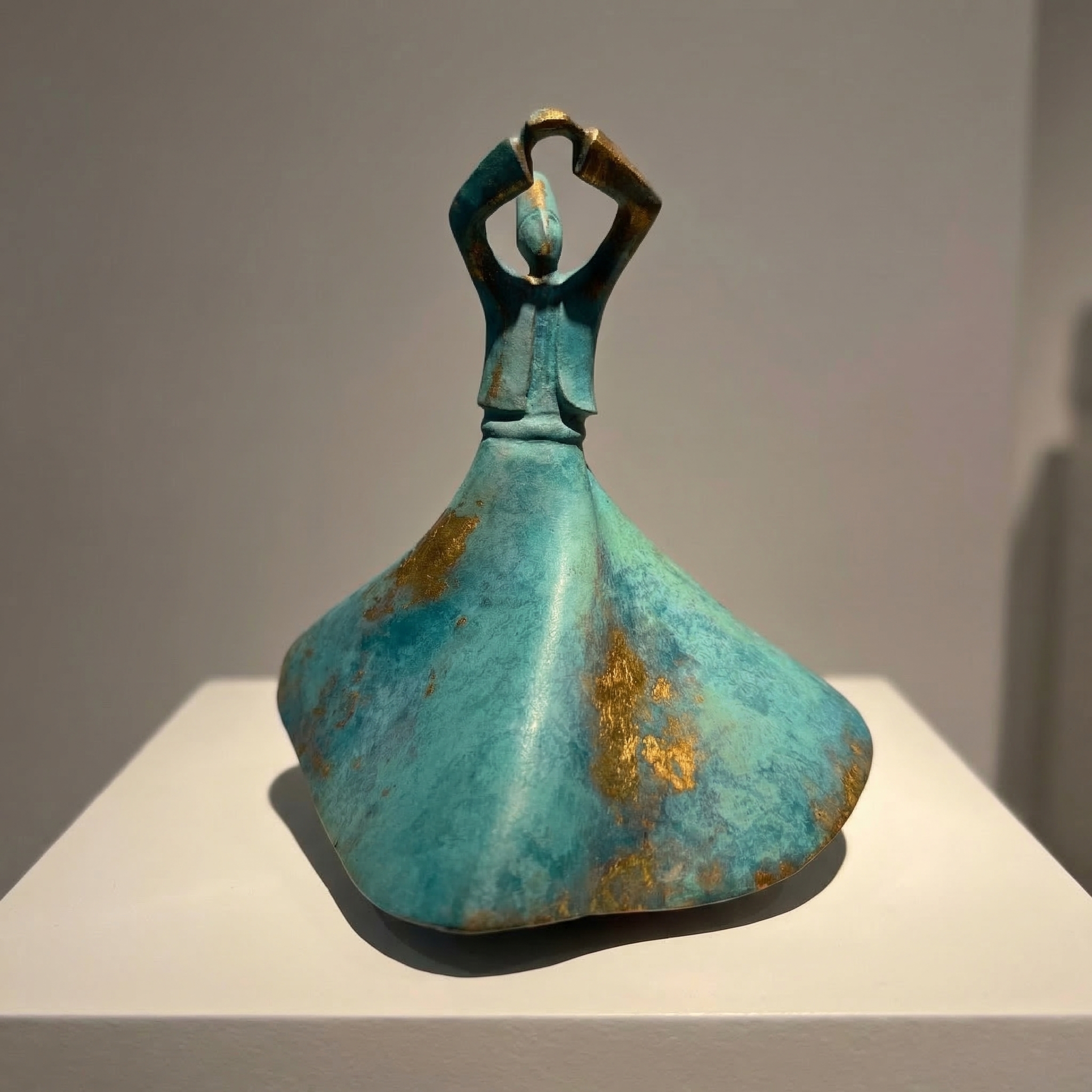 The dervish raises his right hand toward the heavens, certain that God will grant him guidance to straighten his path, trusting that He will open the doors of his heart and mind so he may ascend as a human being.