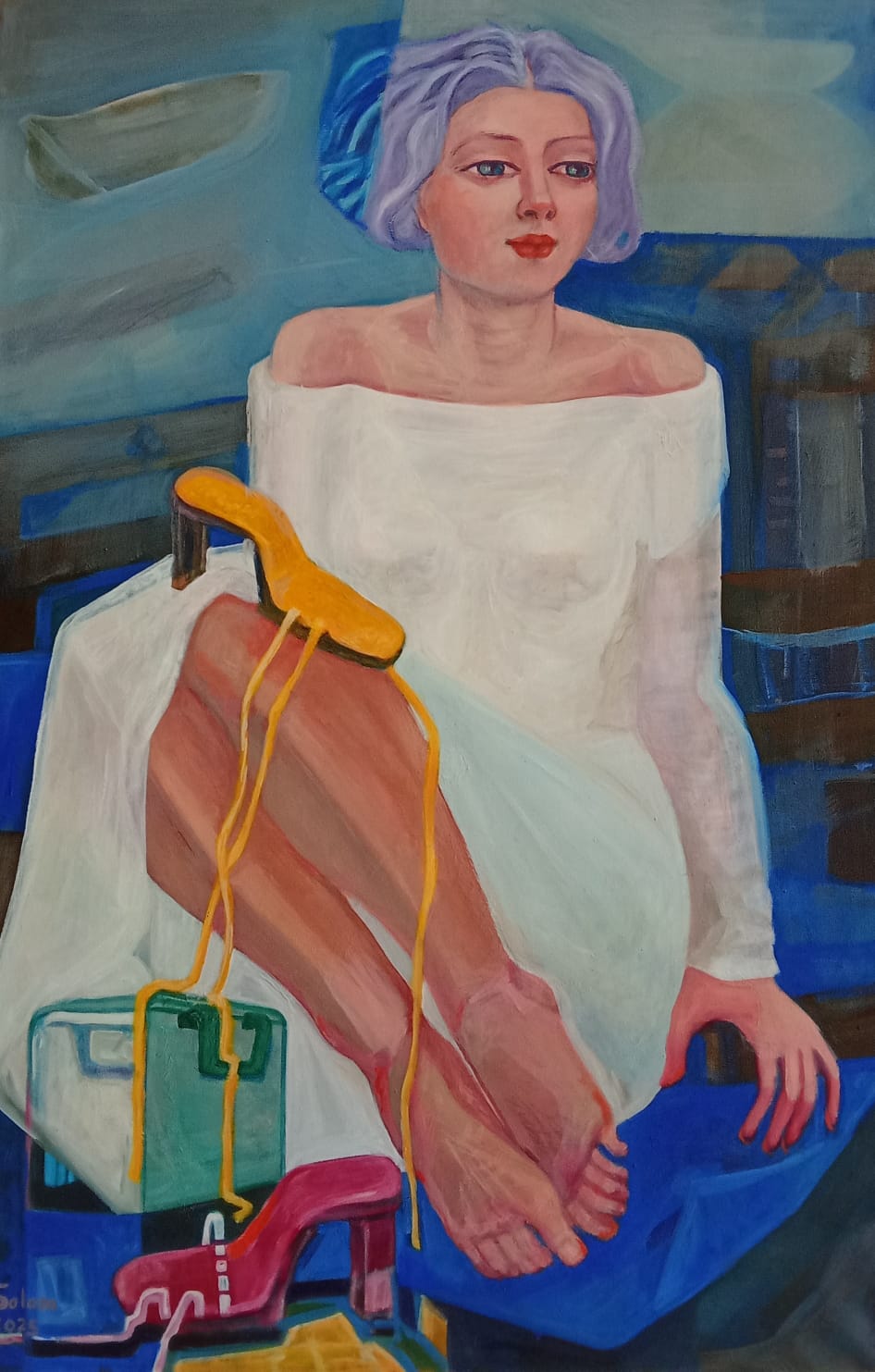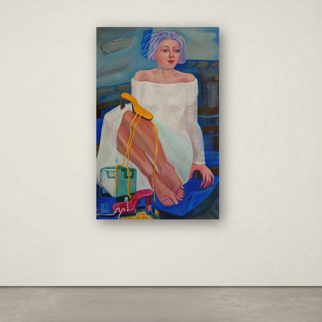 Salam Ahmad, trained in Fine Arts in Syria, works through painting as an intimate, emotional language. Her compositions emerge from quiet inner spaces, where feelings take form before they are spoken. The body dissolves into sensation, and color, especially grey, becomes a field of reflection, suspended between presence and absence, fullness and emptiness.