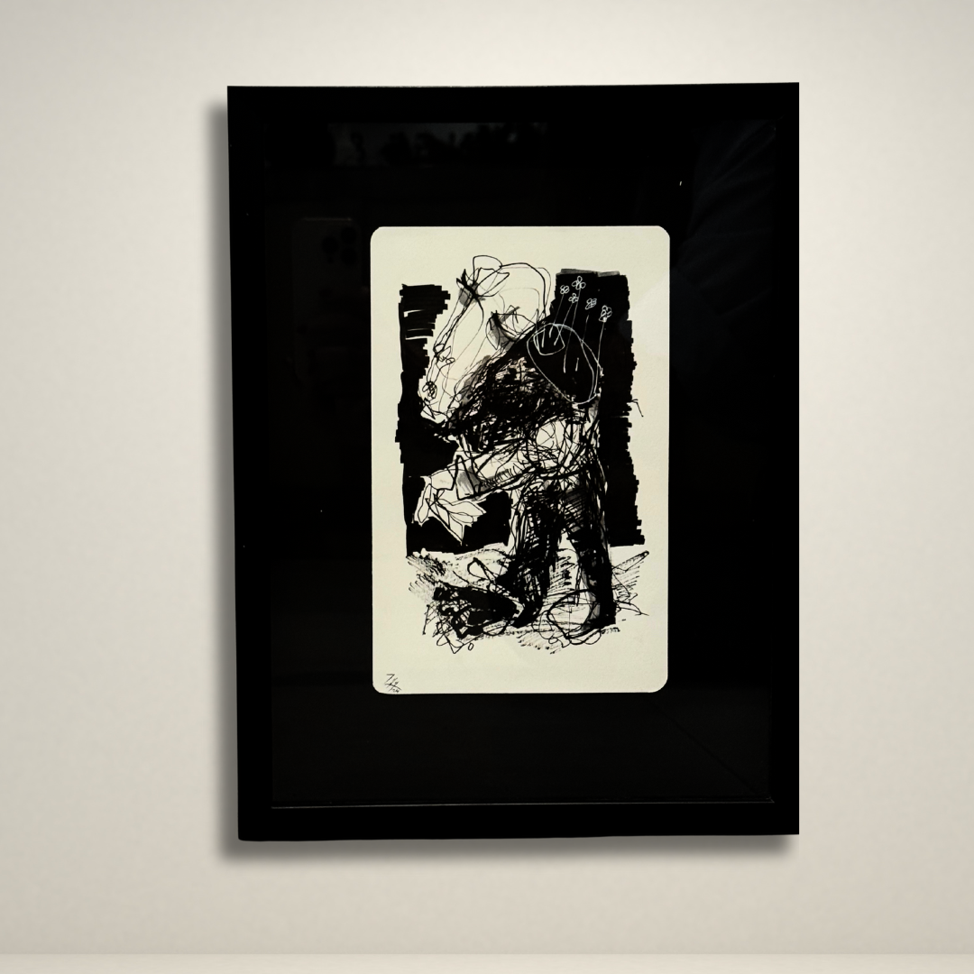 In this twelve-piece collection, Nawar Shartouh distills his signature expressive abstraction into intimate monochrome studies — each one a fleeting shade of character, gesture, and unspoken presence. Drawn with instinctive lines and sculptural silhouettes, the series becomes a poetic archive of human moods: fragile, bold, humorous, contemplative, and beautifully ambiguous.