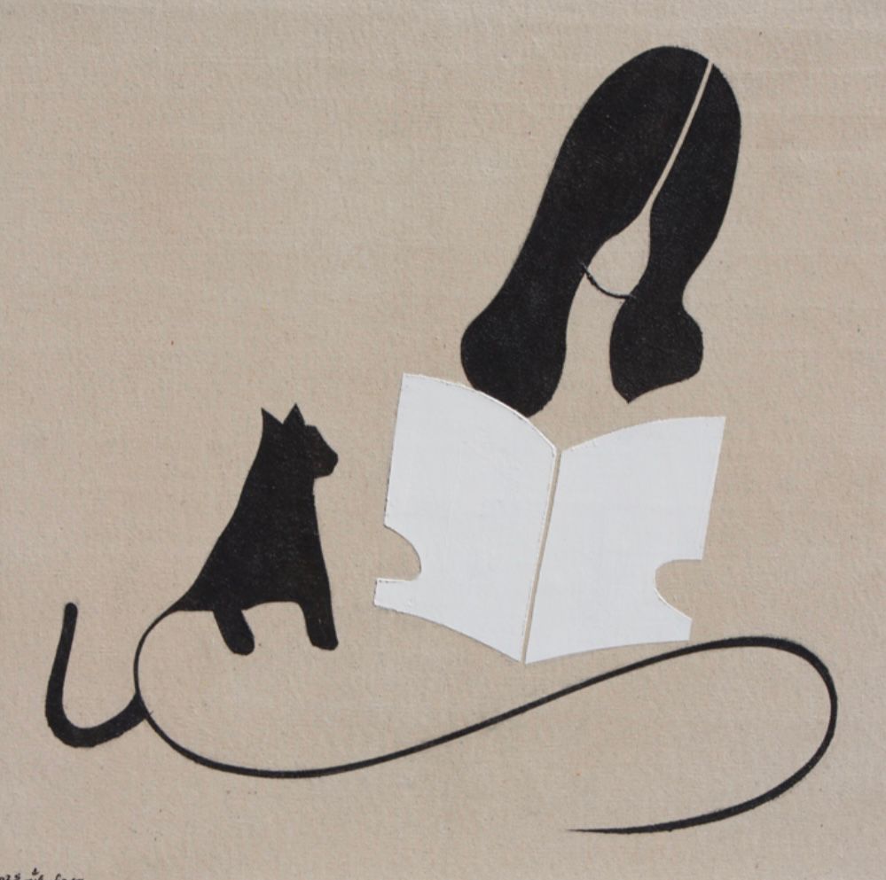 Minimal strokes sketch out a woman and her cat, moments of quiet companionship distilled into pure form. Reading, sitting, playing, each gesture is intimate yet universal: the poetry of daily life made timeless.