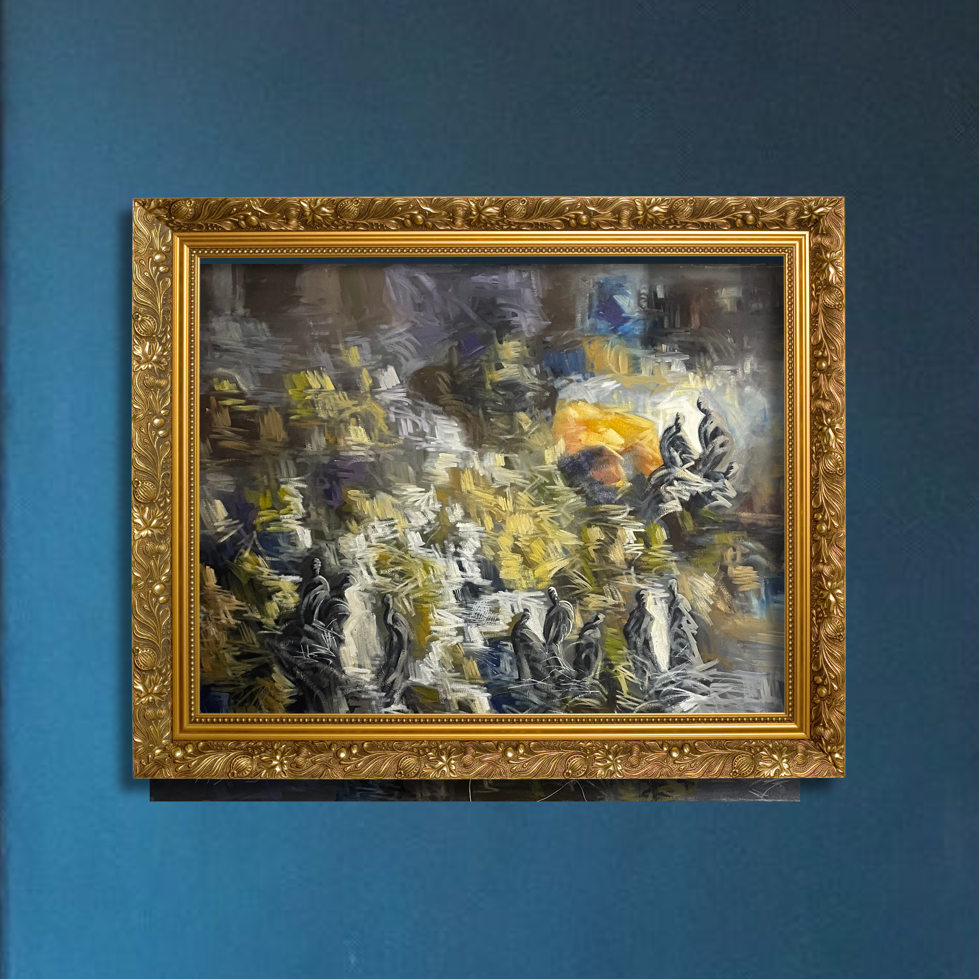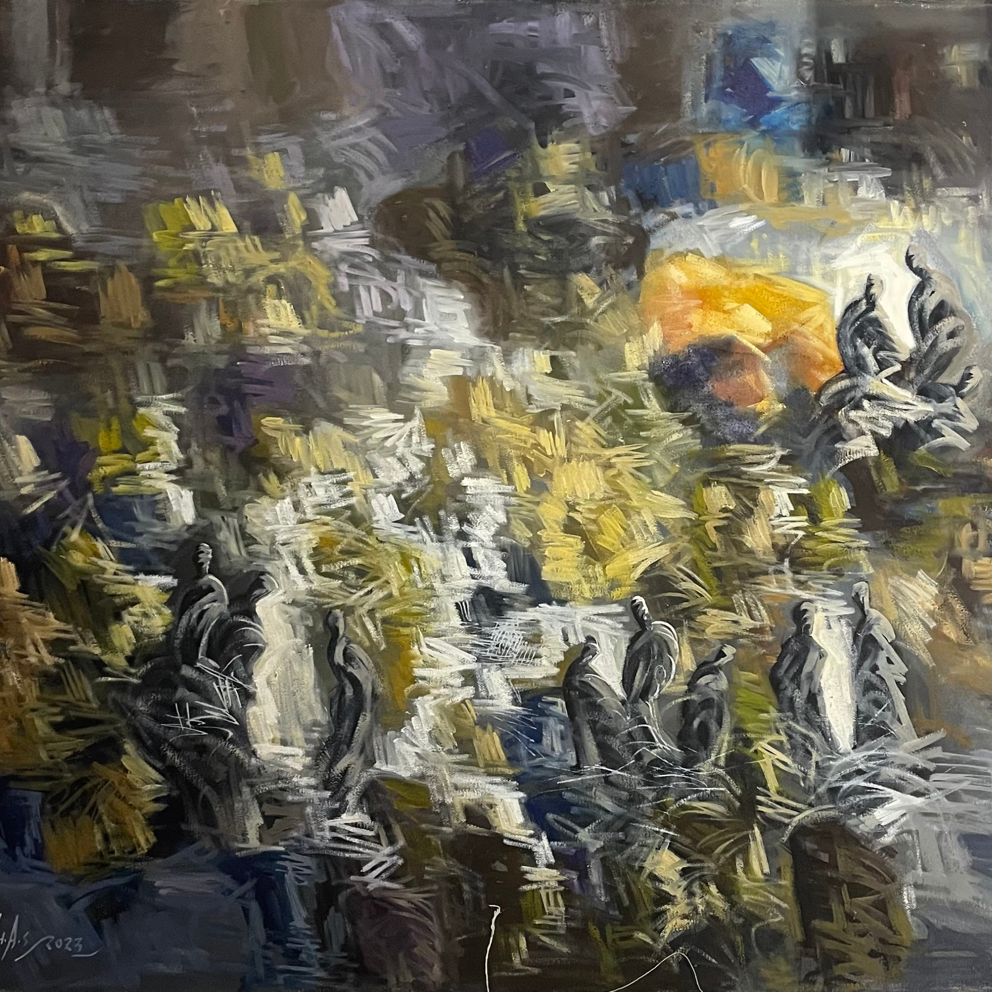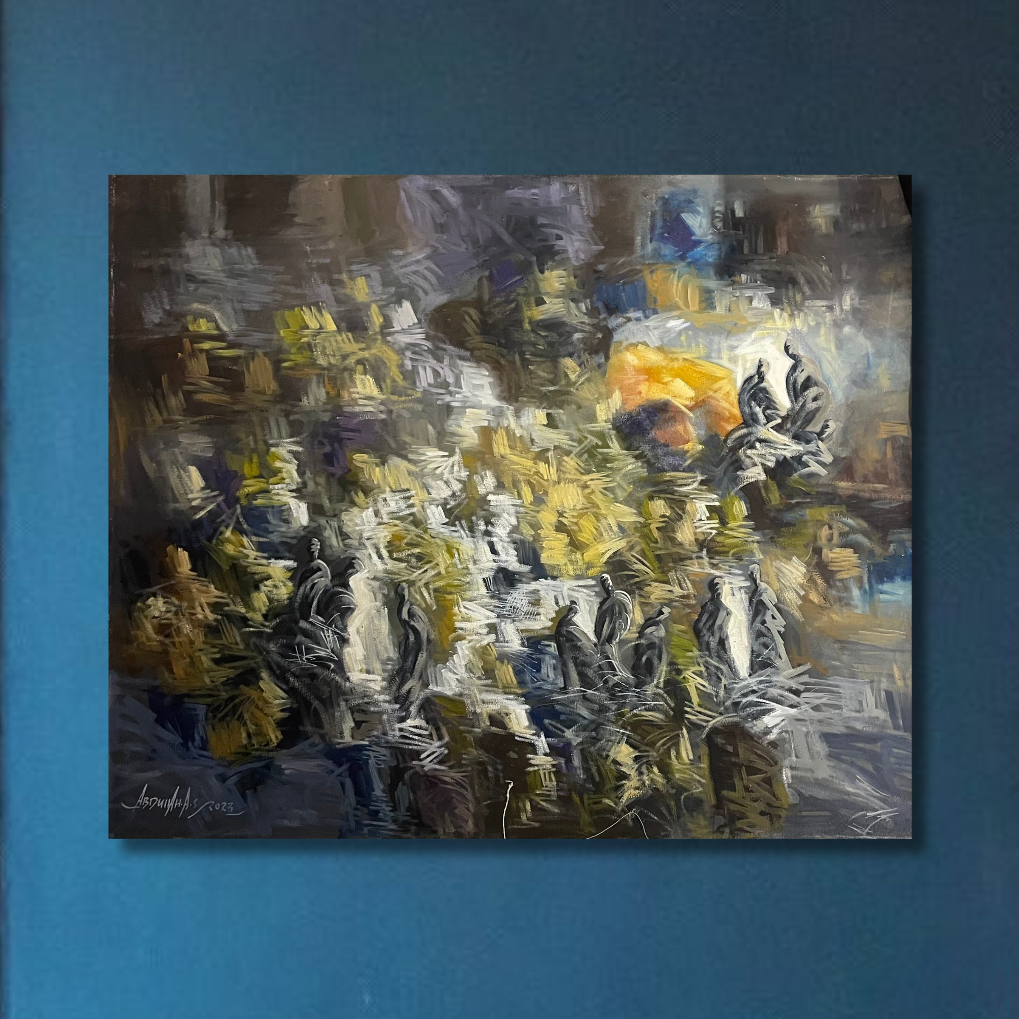 In Judgment Day, Abdallah Abdulsalam reimagines the eternal confrontation between mortality and the unknown. His layered brushwork blurs certainty, forcing the viewer to confront questions of destiny, consequence, and spiritual awakening. It is not just a scene, it is an invocation of awe and fear, where silence feels deafening.