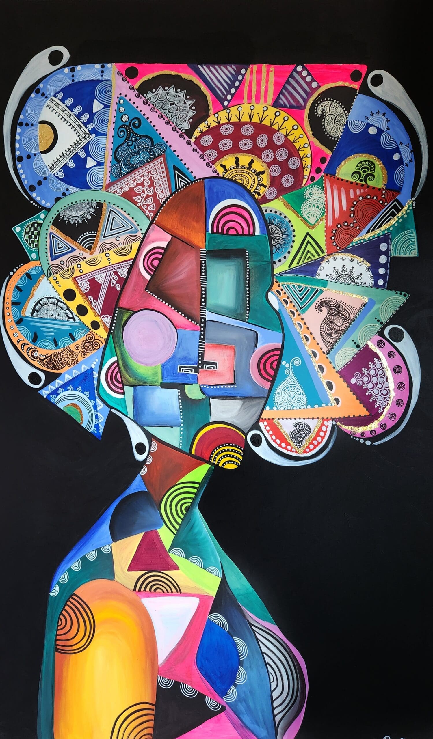 Ria Shanker, a global citizen from India, has lived in Bahrain and Dubai. Her art celebrates the strength of women and their connection with nature, exploring the complexity of the mind, emotions, and intuition. Through her work, she pays homage to the enduring bond between women and the natural world.