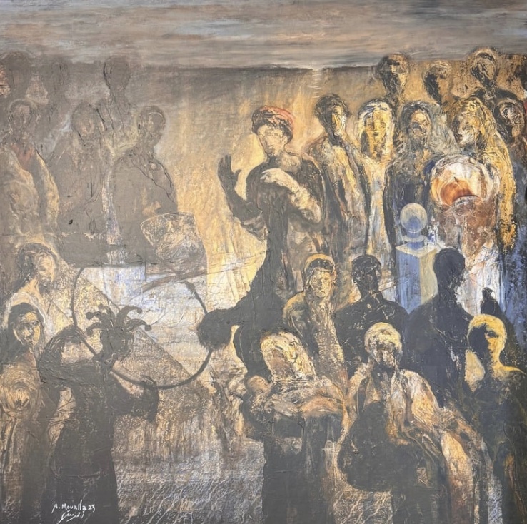 His paintings have been exhibited widely across Europe, the Middle East, and North America, and are part of prestigious institutional and private collections. Moualla’s significance extends to the global art market, with his works featured in major auctions at Christie’s and Sotheby’s. As a pioneer who introduced performance into Syrian visual art, he continues to shape the region’s cultural landscape with vision and depth.