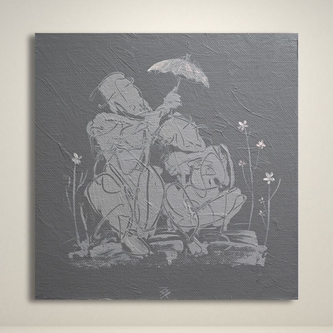 Through expressive abstraction and finely-etched line work, Shartouh captures moments of companionship, tenderness, and simple human rituals. The figures emerge softly from textured backgrounds, forming a series that feels intimate, poetic, and deeply interconnected._