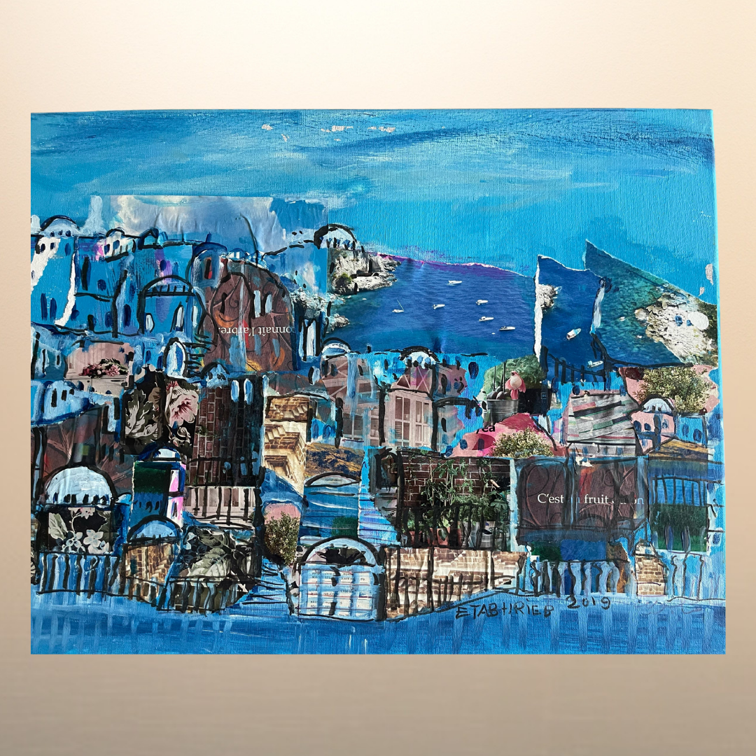 A collage of light and longing, Sea Breeze feels like a memory caught between land and water, where walls meet waves, and the past shimmers beneath layers of blue. It’s a place you’ve never been, but somehow remember.
