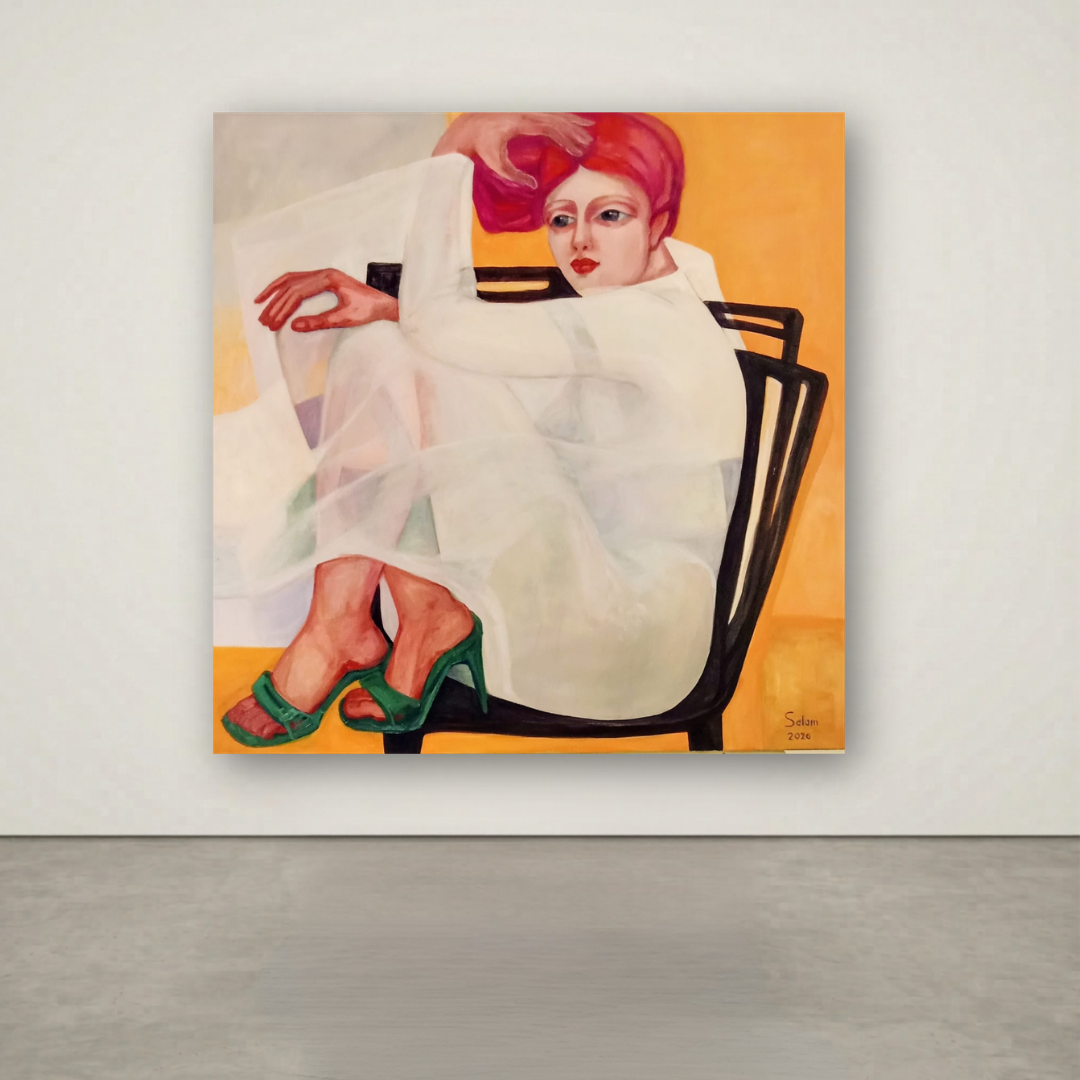 Salam Ahmad, trained in Fine Arts in Syria, works through painting as an intimate, emotional language. Her compositions emerge from quiet inner spaces, where feelings take form before they are spoken. The body dissolves into sensation, and color, especially grey, becomes a field of reflection, suspended between presence and absence, fullness and emptiness.