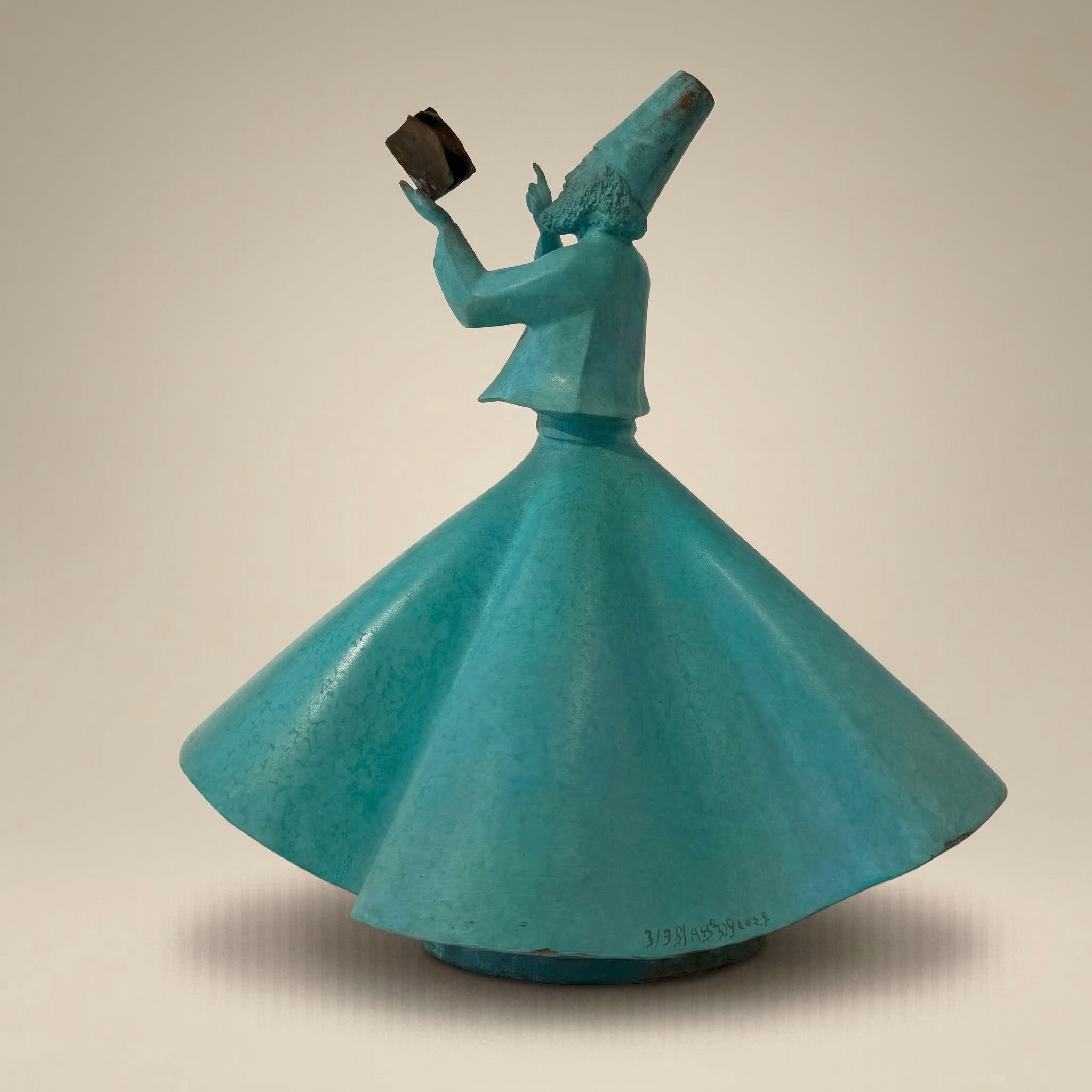 The Dervish of Knowledge embodies the primordial command — Read — the first word revealed, the spark that set human consciousness in motion. In his eternal turning, he does not merely spin; he absorbs, he processes, he radiates. Each revolution is an act of learning, each rotation a page turned in the great book of existence.