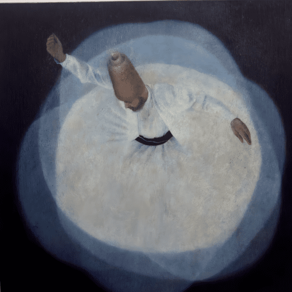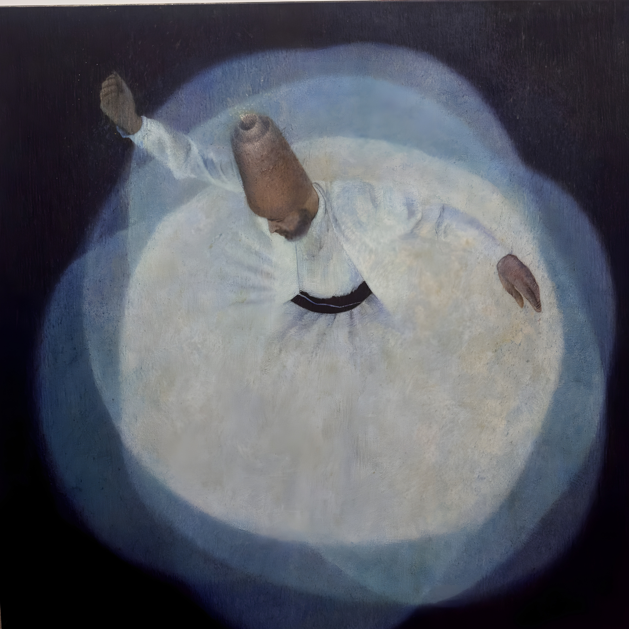 Deeply influenced by the mystical teachings of Shams al-Tabrizi and Jalal al-Din Rumi, Jahjah’s artistic research centers on dervish iconography, sacred letters, and symbolic systems as vehicles of spiritual inquiry. War marked a turning point in his practice, awakening what he describes as “the dervish within”