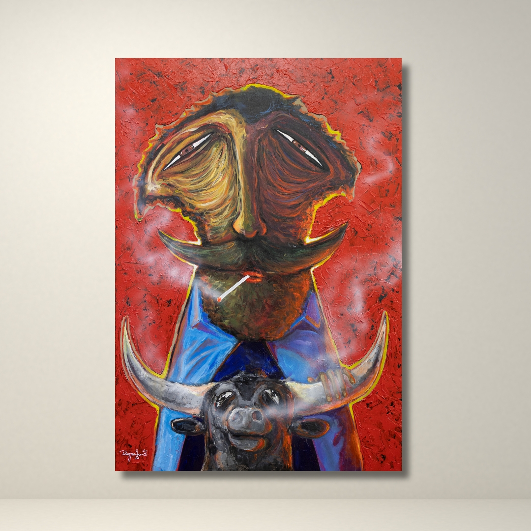 Mr. Y appears merged with the presence of the bull, reflecting a shared state of restrained force. The animal becomes both companion and mirror embodying the silent intensity of unanswered questions. Here, rage is not expressed outwardly, but held within, heavy, watchful, and unresolved.