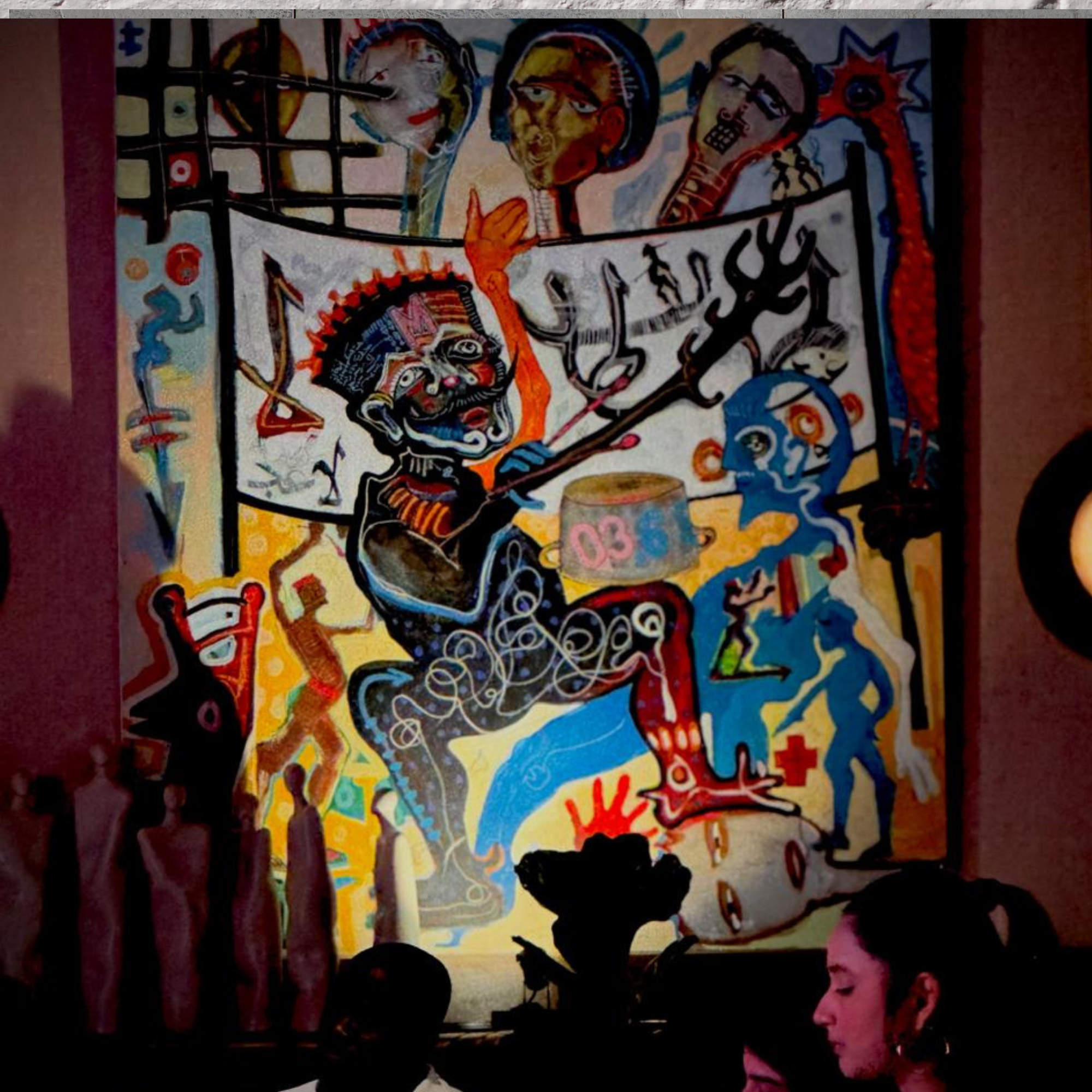 When People Revolt erupts in a storm of color and form, where bodies surge, voices rise, and symbols scatter across the canvas like fragments of a broken order. Figures clash and entangle, some with open mouths screaming, others bound by silence. The scene vibrates between chaos and liberation, a raw chronicle of uprising.